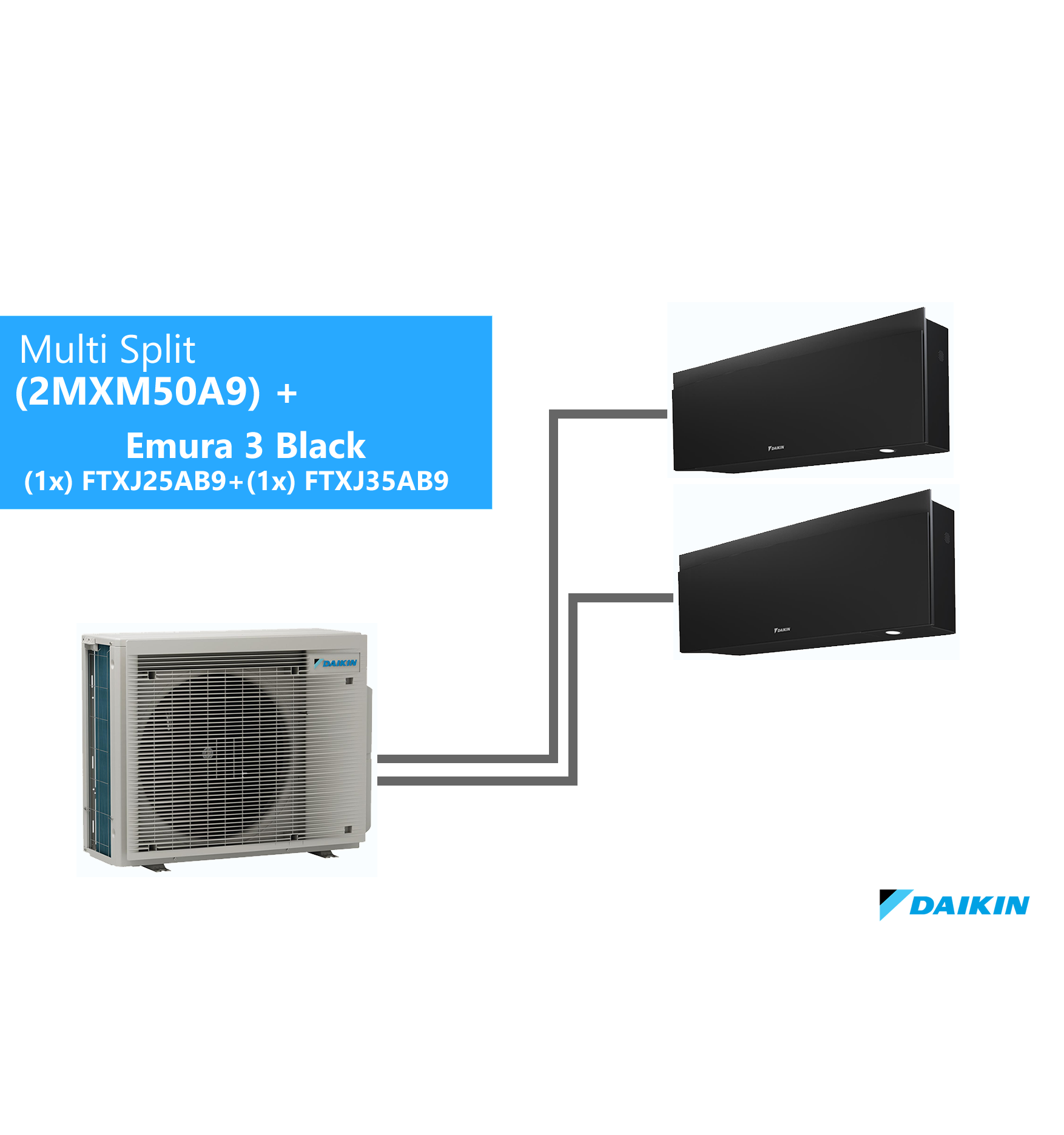 Ψύξη ή θέρμανση πολλαπλών χώρων με μια εξωτερική μονάδα. Το σύστημα Multi-Split χρησιμοποιεί προηγμένες τεχνολογίες όπως το ψυκτικό χαμηλού αντίκτυπου R-32 και έναν συμπιεστή swing για τη μείωση των περιβαλλοντικών επιπτώσεων κατά 68%. Έως και A++ για θέρμανση, έως και A+++ για ψύξη.