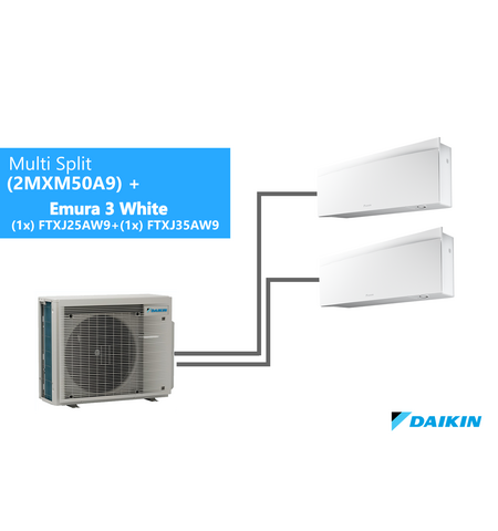 Ψύξη ή θέρμανση πολλαπλών χώρων με μια εξωτερική μονάδα. Το σύστημα Multi-Split χρησιμοποιεί προηγμένες τεχνολογίες όπως το ψυκτικό χαμηλού αντίκτυπου R-32 και έναν συμπιεστή swing για τη μείωση των περιβαλλοντικών επιπτώσεων κατά 68%. Έως και A++ για θέρμανση, έως και A+++ για ψύξη.