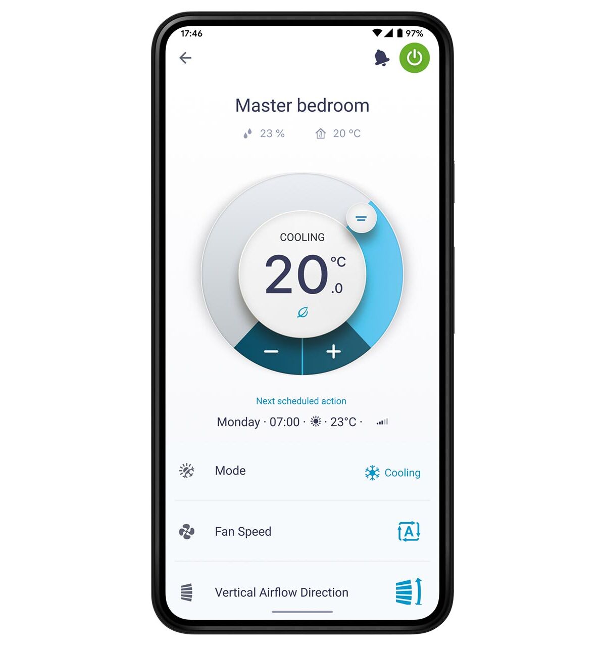 Με την ενίσχυση θέρμανσης θερμαίνεται γρήγορα το σπίτι σας. Η ρυθμισμένη θερμοκρασία επιτυγχάνεται κατά 14% γρηγορότερα από ότι με ένα συνηθισμένο κλιματιστικό.