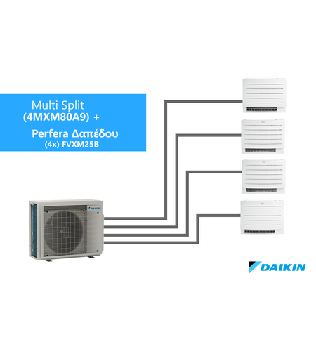 Ψύξη ή θέρμανση πολλαπλών χώρων με μια εξωτερική μονάδα. Το σύστημα Multi-Split χρησιμοποιεί προηγμένες τεχνολογίες όπως το ψυκτικό χαμηλού αντίκτυπου R-32 και έναν συμπιεστή swing για τη μείωση των περιβαλλοντικών επιπτώσεων κατά 68%. Έως και A++ για θέρμανση, έως και A+++ για ψύξη.