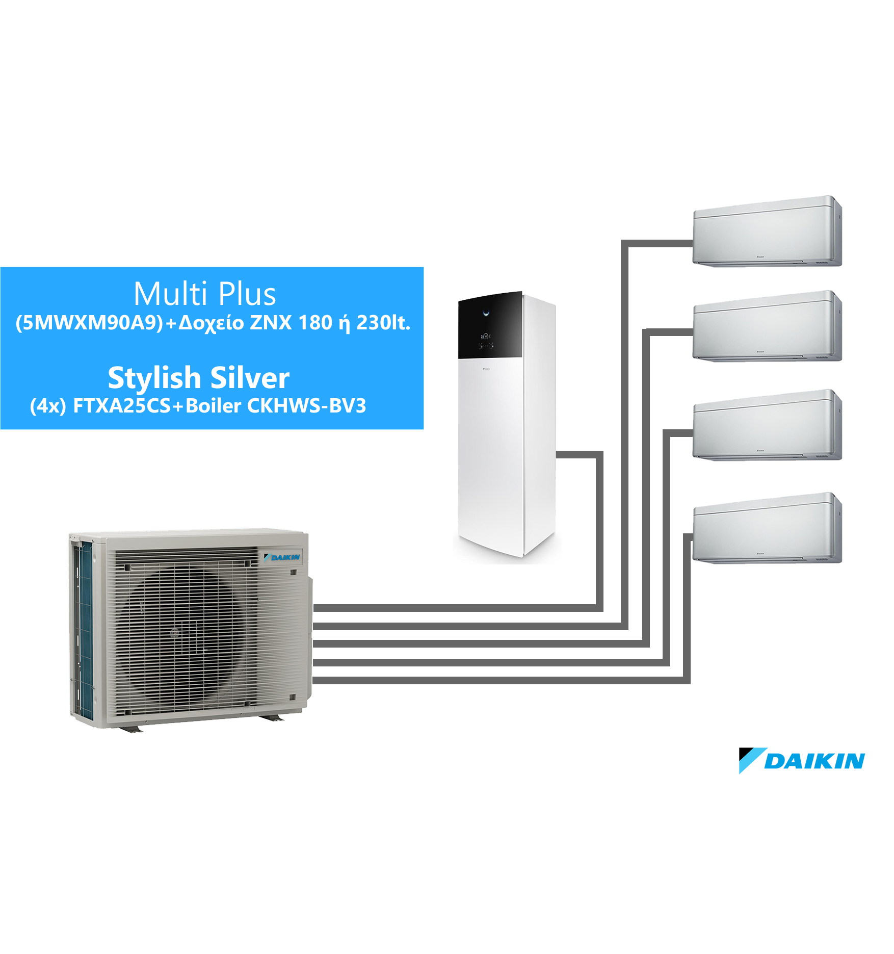 Συνδέστε μια δεξαμενή ζεστού νερού χρήσης και έως 3 εσωτερικές μονάδες στην εξωτερική μονάδα Multi +.